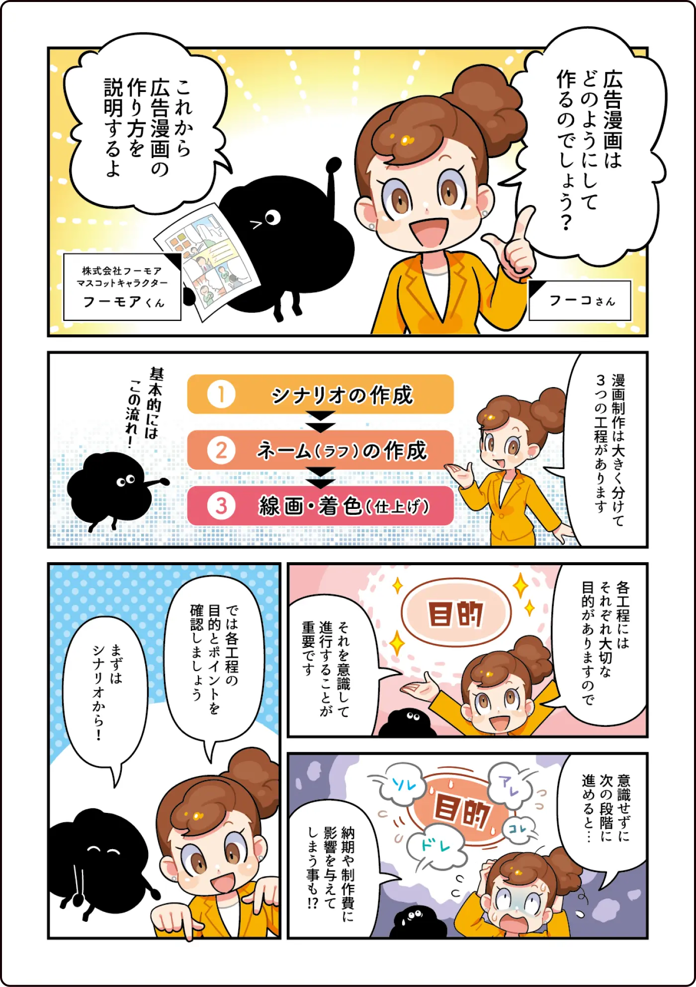 このページでは、漫画の作り方を「漫画」で説明しております。こちらをご覧いただき、漫画のわかりやすさを実感していただけますと幸いです。